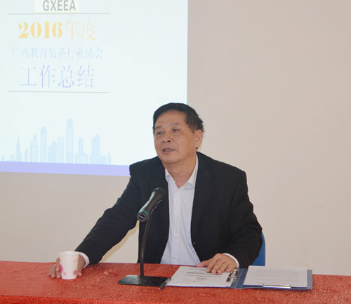 廣西教育裝備行業(yè)協會陳鐵華會長在會上做了2016年度工作總結和下一年度工作計劃報告,他表示,2016年協會基本完成各項工作任務目標,并對這一年來上級領導和各成員單位對協會各項工作的支持表示衷心感謝!隨后,陳會長簡要總結了這一年來協會完成工作情況,并介紹了各項工作取得的成果,特別是最近圓滿完成籌辦第71屆中國教育裝備展示會任務,獲得了政府及社會各界的極大肯定,這與大家的不斷支持和努力是分不開的。對于即將到來的新一年,陳會長做了協會工作任務布署,未來一年,廣西教育裝備行業(yè)協會將進行機構改革,成立各個專業(yè)分會,發(fā)展推廣隊伍,讓企業(yè)全方位參與協會工作;不斷加強管理,形成寬松、互動、共贏的環(huán)境,建立公正、公平、嚴明的規(guī)章制度,更好的服務于企業(yè),促進廣西教育裝備行業(yè)良好發(fā)展。最后,陳會長對南寧千年工藝股份有限公司、南寧千帆教學科技有限公司給予本次會議的大力支持表示感謝,并祝愿協會各成員單位事業(yè)興旺發(fā)展!