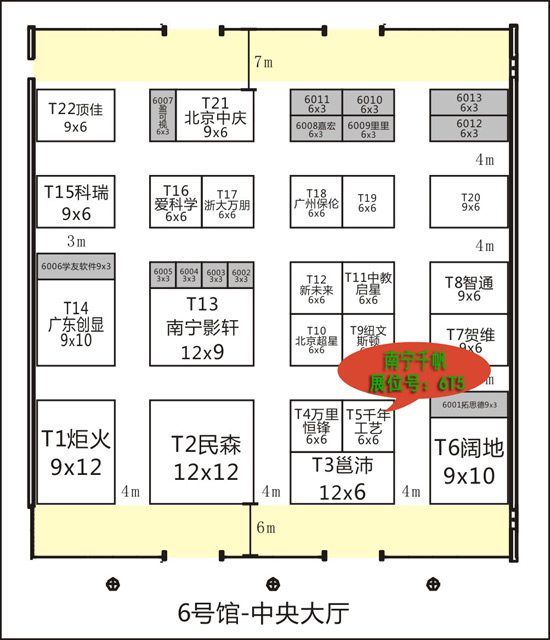 千帆展位號(hào):6號(hào)廳T5 千帆展位號(hào)如圖所示: